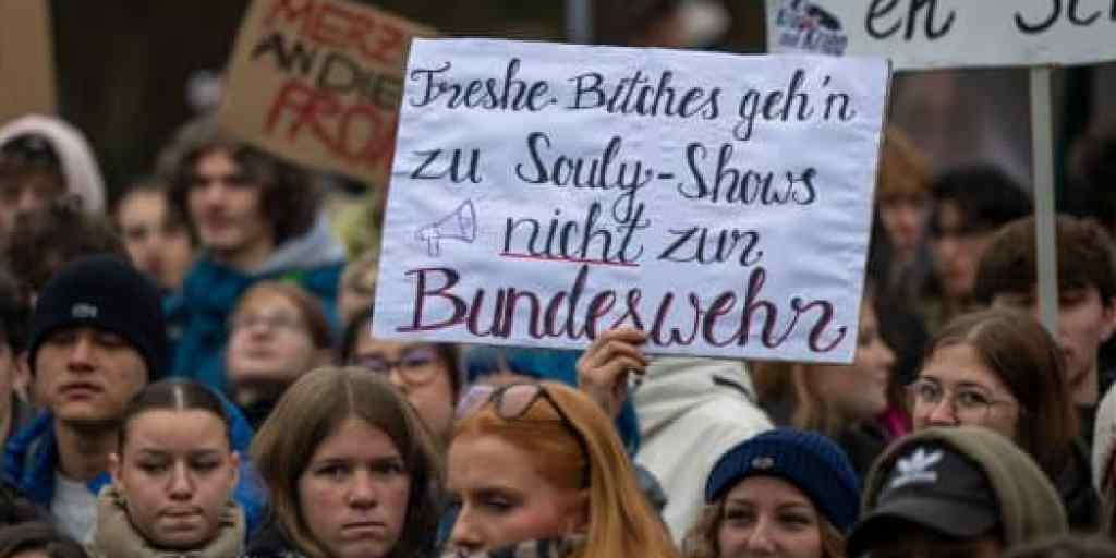 Thousands of schoolchildren in Germany demonstrated against the government's plans for a new voluntary military service in cities and towns across the country on Friday.Many of them skipped school...