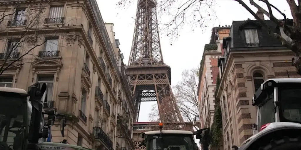 French farmers force their way through Paris with tractors to protest free trade deal