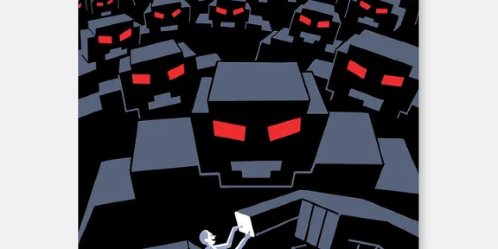 For the cover of the April 13, 2026, Future Issue, the artist Christoph Niemann depicted an army of machines filling the horizon, one of whom cradles a human in...
